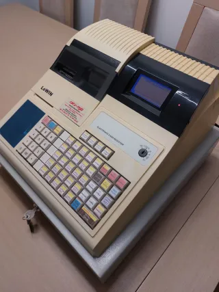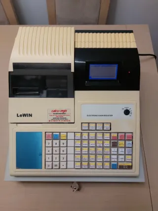 Caja registradora electrónica Lewin, un equipo clásico para tu negocio. La máquina funcionaba perfectamente únicamente necesita una puesta a punto porque lleva muchos años parada (cambio de pila interna, y alguna cosa más de mantenimiento). Ideal para amantes de Retro o Vintage. - Diseño compacto y funcional. - Teclado numérico y de funciones. - Pantalla de visualización. - Compartimento para rollos de papel. Pregunta sin compromiso. Escucho ofertas razonables.