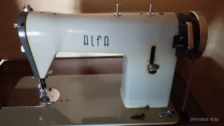 Máquina de coser Alfa antigua, un clásico para tu hogar. - Diseño vintage. - Ideal para coleccionistas o amantes de la costura.