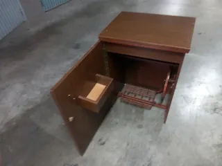 Mueble de madera con un diseño clásico y elegante. - Acabado en tono marrón oscuro. - Detalles dorados en los laterales y frontal. funciona perfecto ... era de mi abuela .. pero nadie le da uso