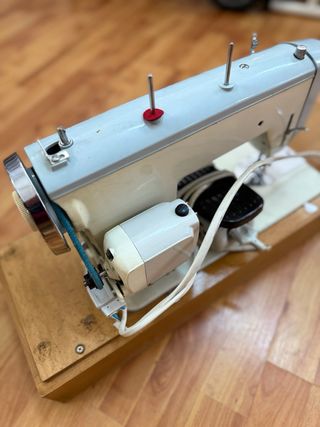 Maquina de coser Singer con motor eléctrico. El motor funciona pero le falta la correa del motor a la máquina.