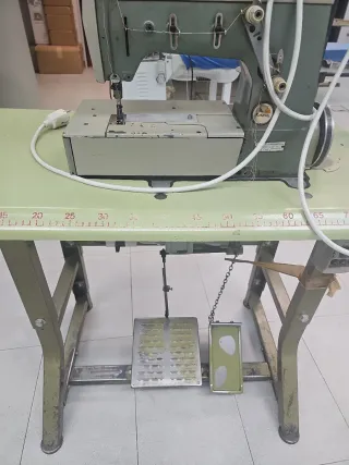 Máquina de coser industrial de la marca Rimolde. Ideal para trabajos de costura. De una aguja cadeneta - Mesa de trabajo con guía de medición. - Incluye motor y cable de alimentación.