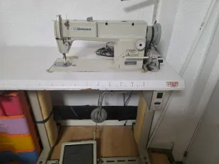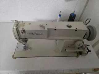 Máquina de coser industrial de la marca Unicorn. Ideal para trabajos de costura. - Color beige. - Incluye pedal. - Estructura metálica.