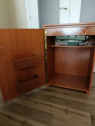 Mueble con maquina de coser, mueble color madera cerezo, con pedal eléctrico, Maquina de coser REFREY funciona estupendamente