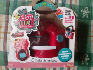 Máquina de coser infantil de la marca Buki, modelo Studio Couture. Incluye accesorios para empezar a crear. Utilizado en una sola ocasión. - Incluye 4 patrones de tela. - Accesorios incluidos: tijeras, hilo, cinta métrica y más. - Edad recomendada: 8+ años.