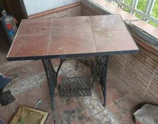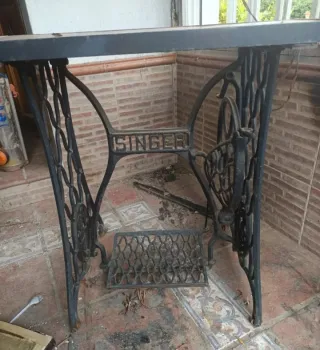 Pie de máquina SINGER de coser muy antigua de pedal, alicatado por arriba hecho mesa pero el alicatado se puede quitar para acoplar la máquina de coser. Hierro fundido negro. Recoger en Mérida, 685395507 Elena