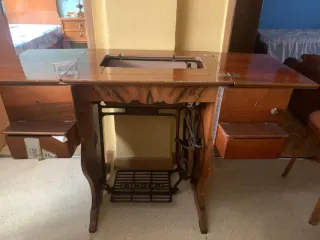 Máquina coser antigua con mueble