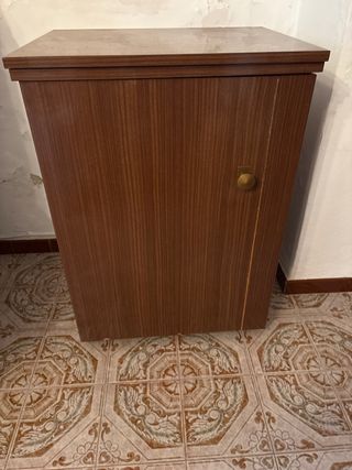 Mueble de madera con un diseño clásico y elegante, ideal para guardar tu máquina de coser. - Acabado en tono marrón cálido. - Diseño con puerta frontal. - Patas bajas para mayor estabilidad.SE ACEPTAN OFERTAS HASTA 31-1-26