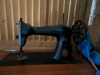 Máquina de coser zapatos antigua en buen estado. - Diseño clásico y robusto. - Ideal para coleccionistas o para uso decorativo.