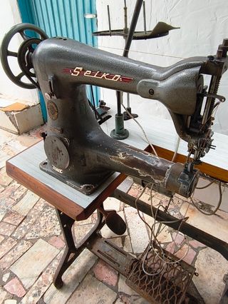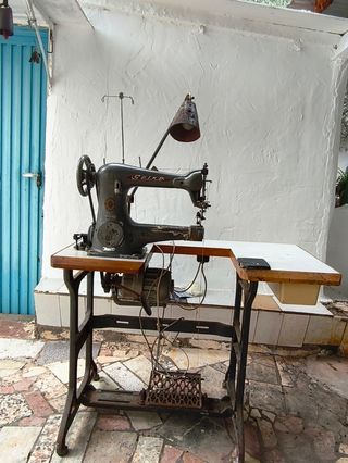 La maquina prácticamente es regalada lo que cobro es el pedal de la Máquina de coser industrial, ideal para trabajos de costura también tengo el mueble si interesa es blanco de madera por 30 euros - Mecanismo de bobina. - Soporte para hilo.