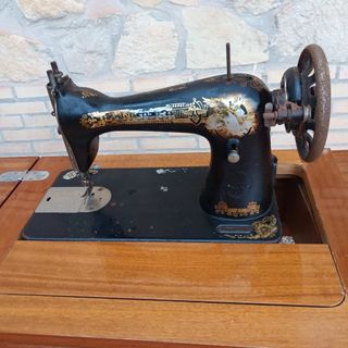 - Modelo antiguo, año 1920 aprox, de la marca Singer. - Estructura de hierro fundido. Marca Alfa - Decoración dorada con detalles florales. - Incluye mueble y cajón de protección de madera.Máquina de coser Singer antigua, ideal para coleccionistas, para restaurar y darle una nueva vida. Se esconde en el tablero( tablero en buen estado), ver fotos. - Diseño clásico con detalles decorativos dorados. - Volante de hierro fundido. - Base de madera. - Para restaurar.