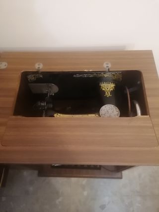 Maquina muy antigua con mueble de cuarterones,funciona perfectamente tiene muy poco uso en el desgaste del volante se ve.estilo castellano.
