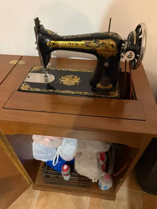 Se vende maquina de coser Singer, del año 1914 , 111 años de antigüedad, se puede comprobar por el número de serie, funcionando y guardada en un mueble., para usar o para adorno. Con mueble o sin mueble , mismo precio