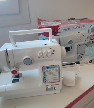 Preciosa máquina de coser infantil de El Corte Inglés, ideal para principiantes. Es de color blanco y rosa, está perfecto estado, la vendo porque le han regalado otra igual. Incluye 2 velocidades de costura, tensor ajustable para el hilo y varios accesorios. - Máquina de coser compacta y fácil de usar. - Perfecta para proyectos de costura pequeños. - Incluye accesorios como bobinas de hilo y agujas.