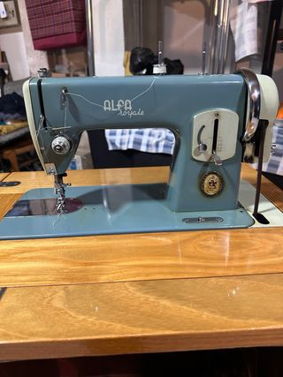 Máquina de coser Alfa de estilo vintage, ideal para coleccionistas o aficionados a la costura. - Diseño clásico en color azul y crema. - Incluye mueble de madera con compartimentos. - Mecanismo de pedal para su funcionamiento. FUNCIONA Y ESTA EN BUENAS CONDICIONES