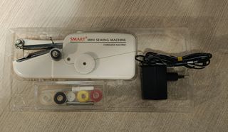 Máquina de coser portátil SMART a batería. Está en perfectas condiciones y se entrega con todos los accesorios que aparecen en las fotos; 5 bobinas de hilo, dos agujas (una puesta y otra nueva), descosedor, cargador, etc. La batería carga perfectamente.
