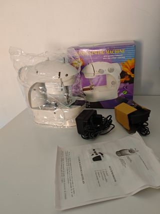 Vendo máquina de coser de color blanco y tamaño pequeño. Totalmente nueva, con la caja incluida. Se incluye el cargador, pedal, enhebrador, carretes enteros y carretes vacíos, y una aguja. Las medidas aparecen en las imágenes. El pack completo por 15€.