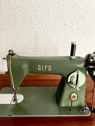 Preciosa máquina de coser ALFA original, fabricada en España, probablemente de los años 60-70. Conserva su mueble de madera original con pedal y sistema mecánico completo. En muy buen estado de conservación, tanto la máquina como el mueble, con el bonito color verde característico de la marca ALFA. Ideal tanto para uso real de costura como para decoración vintage, colección o ambientación retro en hogar, estudio o comercio. 🔹 Tipo: mecánica de pedal 🔹 Material: metal y madera maciza 🔹 Medidas aprox. del conjunto: 85-90 cm ancho × 45 cm fondo × 75-80 cm alto 🔹 Peso aprox.: 30 kg Pieza auténtica con encanto Entrega en mano en vlc