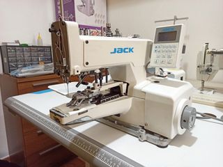 Maquina de botones Jack T1377E-B Usada una semana Para coser botones de 2 o 4 agujeros - Alzaprensatelas automatico - Cortahilos automático - Luz led - Motor incorporado silencioso y de bajo consumo - Altura del prensatelas de 9 mm - Velocidad de 5000 ppm Para coser botones de dos agujeros, y de 4 agujeros de forma cruzada o en paralelo Bancada nueva, con ruedas en perfecto estado Revisada, engrasada y en perfecto estado. Como nueva, con caja Ver y probar en Vélez Málaga Contacto: 689978987