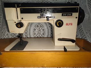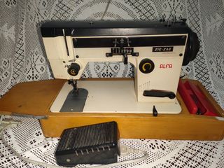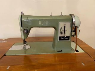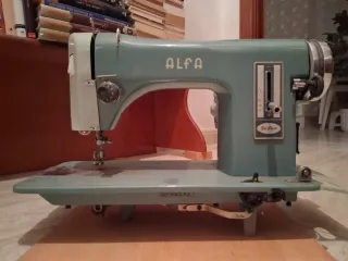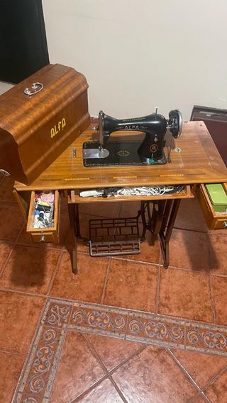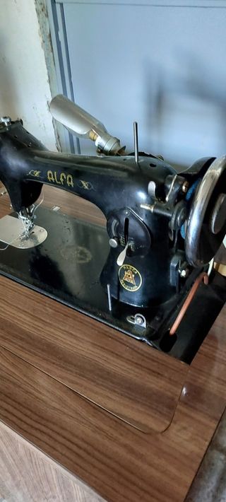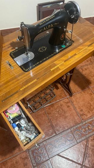 Maquina de coser Alfa,del siglo xx,desconozco la fecha exacta de fabricación, pero es muy antigua, funciona perfectamente, mueble de nogar de gran calidad, tiene arañazos y signos evidentes del tiempo,una auténtica joya de colección