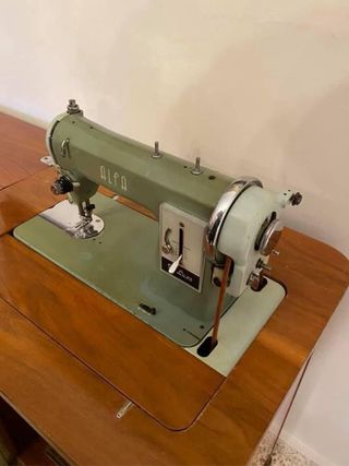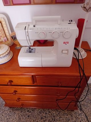 Preciosa máquina de coser Alfa antigua, en buen estado. Ideal para coleccionistas o amantes de la costura tradicional. - Modelo Alfa. - Incluye mueble de madera. Está en perfectas condiciones,cose bien ,ha tenido muy poco uso.