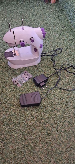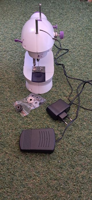 Máquina de coser pequeña y compacta, ideal para pequeños arreglos. Incluye pedal,cable de alimentación y accesorios. Está en perfecto estado y lista para usar. - Funciona con corriente. - Diseño ligero y fácil de transportar. - Incluye pedal y cable de alimentación. - Accesorios incluidos.