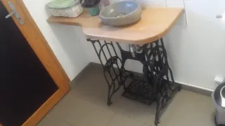 La primera imagen es solo un ejemplo; la construí y vendí. El soporte para máquina de coser se puede personalizar con una mesa, un fregadero, un cajón, un estante, etc., según se desee. El precio del pedido personalizado dependerá de estas opciones. Un boceto o una buena descripción de sus necesidades es suficiente. Después, crearé un dibujo y le enviaré un presupuesto.