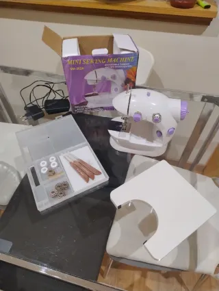 Mini máquina de coser, ideal para pequeños arreglos y proyectos. - Viene en su embalaje original. - Diseño compacto y fácil de usar.