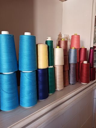 Bobinas de hilo de coser, especial máquinas de coser industriales Varios colores Del crudo y el amarillo ya no quedan Se venden por separado algunas miden 17 cm otras 12 cm