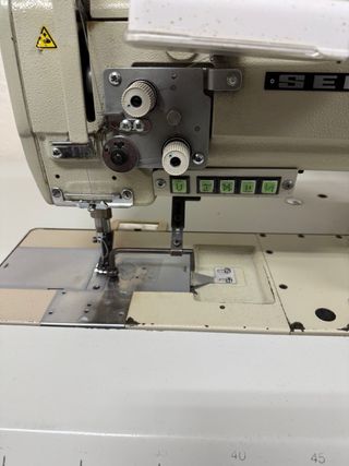 Máquina de coser industrial Seiko con triple arrastre y función de corta de hilo automático.