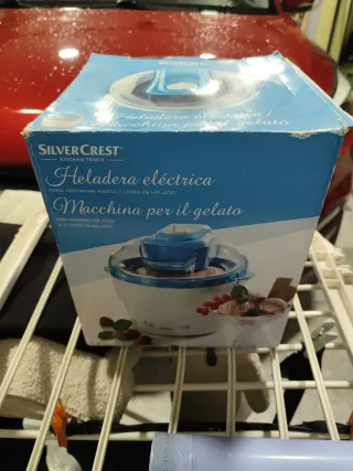 Máquina eléctrica Silvercrest para preparar helado casero. Permite hacer hasta 1 litro de helado. - Diseño compacto y moderno. - Fácil de usar y limpiar.