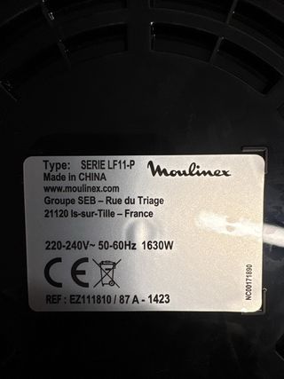 Freidora de aire Moulinex en color negro. Diseño moderno y compacto. - Marca: Moulinex - Color: Negro - Capacidad: [Especificar capacidad si se conoce] - Material: [Especificar material si se conoce]