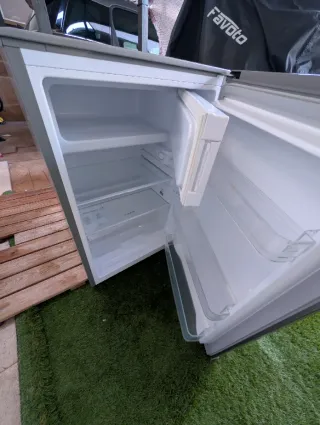 Nevera Candy de tamaño compacto, ideal para espacios reducidos. Incluye un pequeño congelador. - Color gris metalizado. - Tirador lateral. - Diseño moderno.