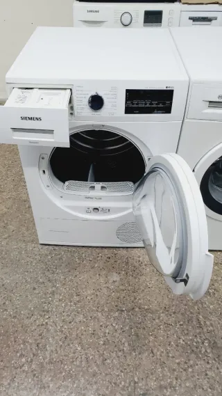 Secadora de ropa Siemens en color blanco. - Diseño moderno y elegante. - Panel de control intuitivo. - Puerta frontal con apertura. - Filtro de pelusas integrado.