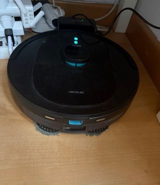 Robot aspirador Cecotec Conga 9590 con navegación láser inteligente y cepillo de silicona. Funciona perfectamente, hace un mapeo de la casa, detecta mascotas, limpia y friega. Muy funcional. - Modelo: Conga 9590 Spin Revolution. - Potencia de succión: 10.000 Pa. - Autonomía máxima: 240 minutos. - Incluye mopas giratorias. - Especialmente diseñado para pelo de mascotas.