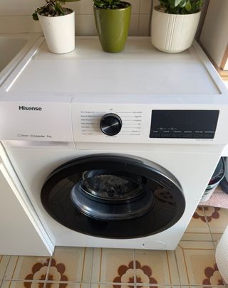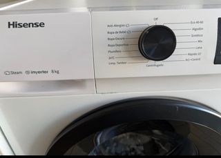 Lavadora Hisense de carga frontal con capacidad de 8kg y función de vapor. - Modelo: Hisense - Capacidad: 8kg - Función: Vapor - Programas: Anti Alergias, Ropa de Bebé, Ropa Oscura, Ropa Deportiva, Limpieza Tambor, Eco 40-60, Algodón, Sintético, Lana, Mixto, Rápido 15', Act+Centrifugado. - Tecnología: Inverter