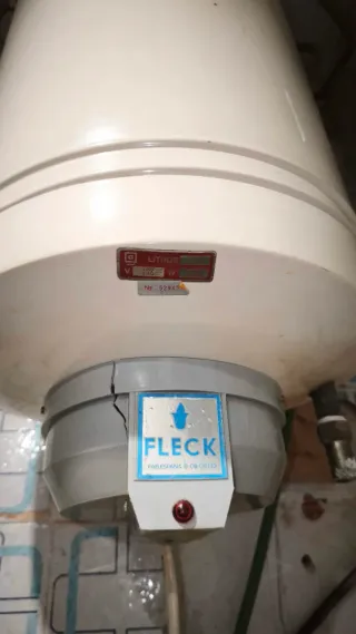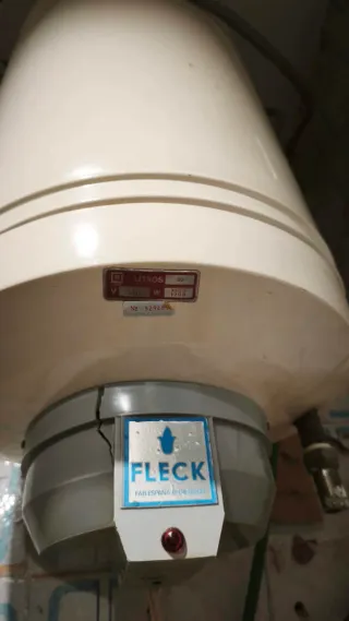 Termo eléctrico de la marca Fleck. Está en Calafell , Tarragona - Capacidad: 52 Litros - Potencia: 1200 W - Voltaje: 230 V - Número de serie: 52945