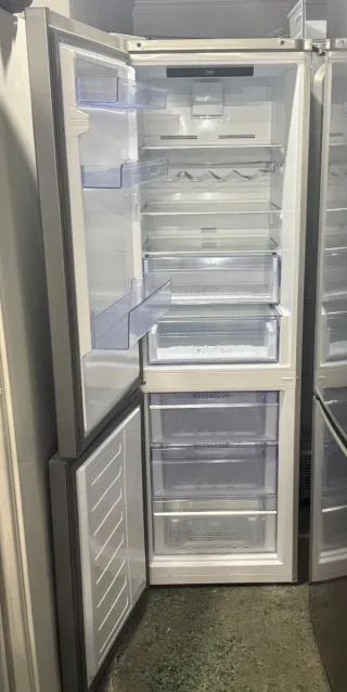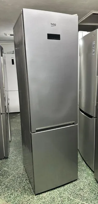 Nevera Beko de color plateado. Clase no Frost bajo consumo con garantía de 6 meses - Diseño moderno y elegante. - Panel de control digital.