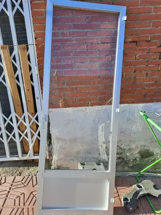 Puerta de cristal con marco de aluminio. - Apertura hacia la derecha. - Panel inferior opaco.