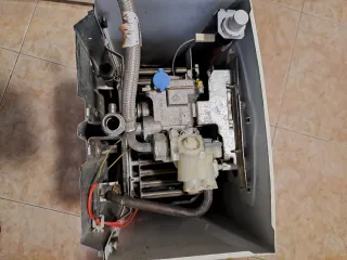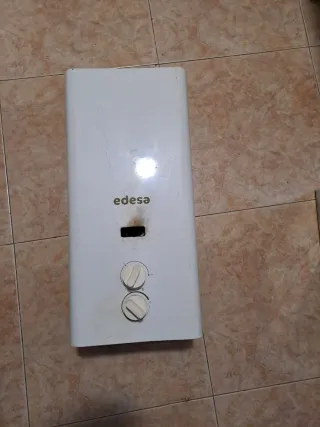 Calentador de agua Edesa de 11 litros. Componentes metálicos y de latón. - Quemador. - Válvula de gas. - Serpentín. - Tubería de cobre.