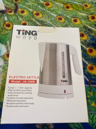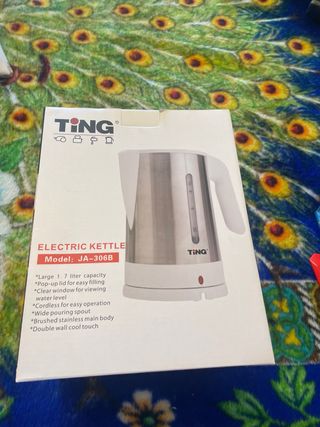 Hervidor eléctrico de acero inoxidable TING. - Capacidad de 1.7 litros. - Tapa con apertura automática. - Ventana para ver el nivel de agua. - Cuerpo de acero inoxidable. - Doble pared con tacto frío.