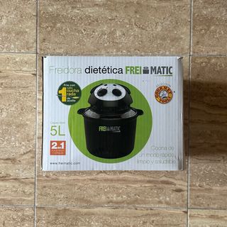 Freidora dietética FREI MATIC con capacidad de 5 litros. Permite freír con solo una cucharada de aceite y también hornear. - Capacidad: 5L - Funciones: Freír y Hornear Solo abierta para comprobar el producto.