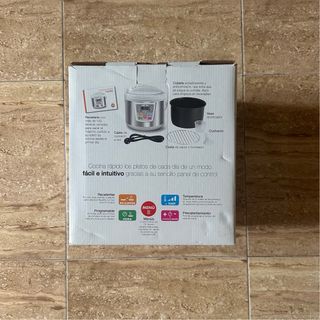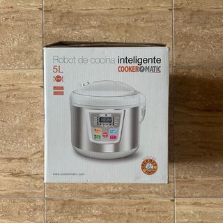 Robot de cocina Cookermatic con capacidad de 5 litros. Diseñado para facilitar la preparación de tus comidas. - Capacidad: 5L - Indicador de seguridad 2-10 - Función de seguridad 24 horas - Pantalla digital - Múltiples programas de cocción Solo ha sido abierto para ver que el producto funciona pero jamá ha sido usado. La caja presenta algunos desperectos debido a haber estado guardada.
