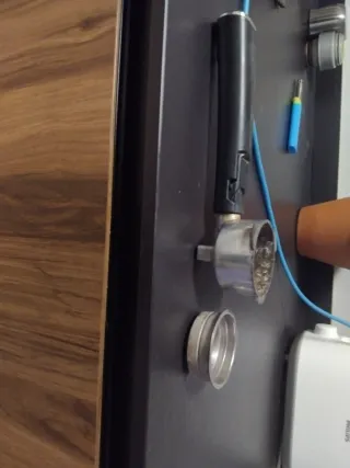 Portafiltro de café con capacidad para una carga. - Material: Acero inoxidable. - Diseño para una carga de café.
