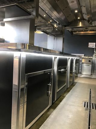 Si buscas equipar tu cocina con lo mejor del mercado gastronómico, esta Cocina Central Isla CHARVET es la oportunidad perfecta. Reconocida mundialmente por su robustez, precisión y diseño de alto nivel, CHARVET es sinónimo de excelencia en cocinas profesionales. Configuración completa y versátil: 3 fogones de alto rendimiento 1 plancha de cromo (ideal para sellados perfectos y fácil limpieza) 1 parrilla 2 planchas radiantes 1 salamandra de fuego 1 baño María 2 hornos pasantes (acceso frontal y posterior para máxima eficiencia operativa) 2 mesas calientes 2 chimeneas 1 estantería integrada con doble grifo de agua