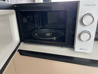 Microondas Cecotec modelo ProClean 3010 en color blanco y negro. Cuenta con un diseño moderno y elegante. Personas de preferencia en Pamplona ,se aceptan pagos solo en bizum y efectivo . - Puerta con acabado en cristal negro. - Mandos giratorios. - Tecnología 3DWave.