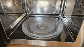 Microondas en perfecto estado, con detalles estéticos mínimos. A recoger en Móstoles - Modelo de acero inoxidable. - Funciona correctamente. - Incluye cinta aislante (ya puesta).falta plato