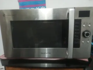 Microondas de acero inoxidable. Tiene bastante uso, de ahí su precio, pero funciona a la perfección y nunca ha dado fallo. Es bastante grande.