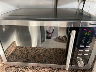 Microondas Corbero con panel táctil. Funciona correctamente. - Diseño moderno en acero inoxidable. - Panel de control intuitivo. - Múltiples funciones de cocción y descongelación.