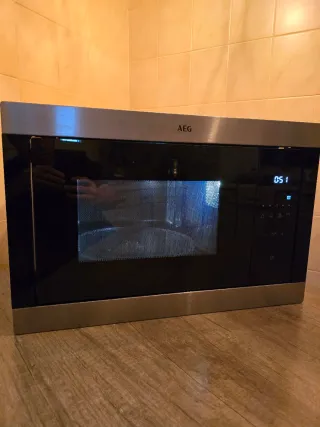 Microondas AEG de encastre en perfecto estado, casi sin uso. - Color negro brillante. - Diseño moderno y elegante. - Panel de control digital. - Funciona perfectamente. - Con garantía.