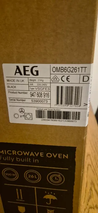Microondas de columna de la marca AEG, completamente nuevo y en su embalaje original. - Incluye plato giratorio de cristal. - Base giratoria. - Protegido con poliestireno para un transporte seguro.